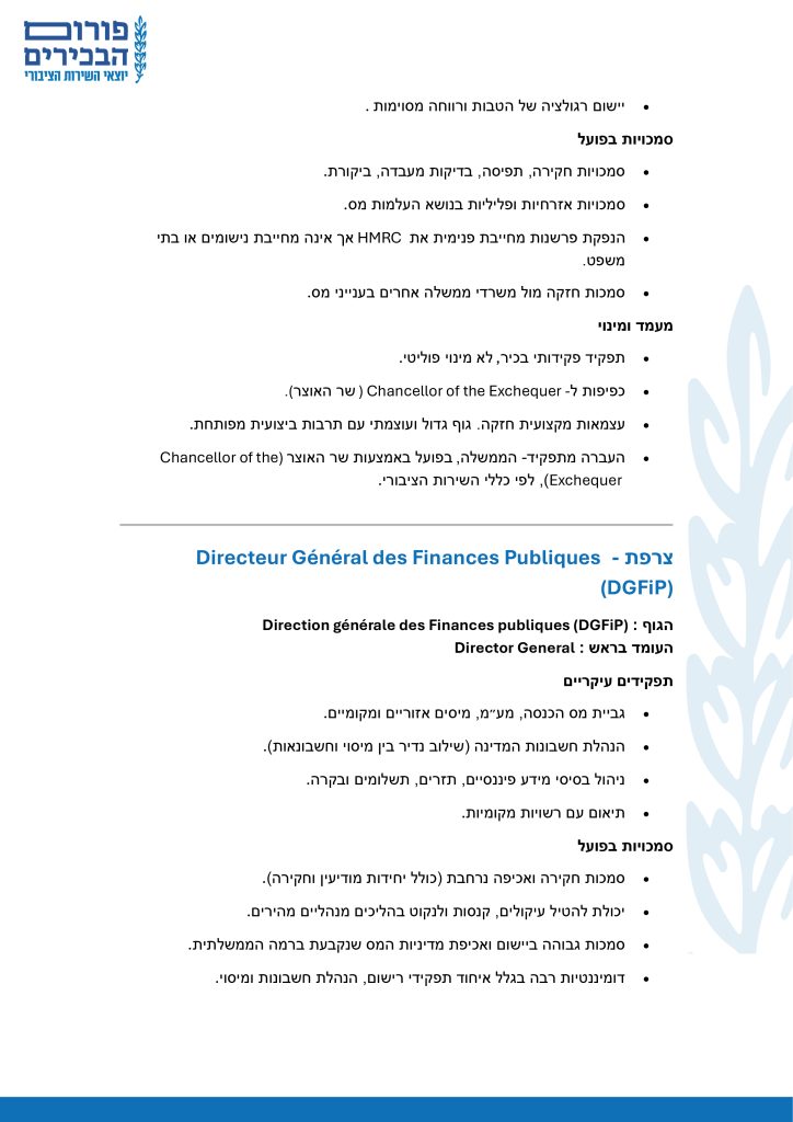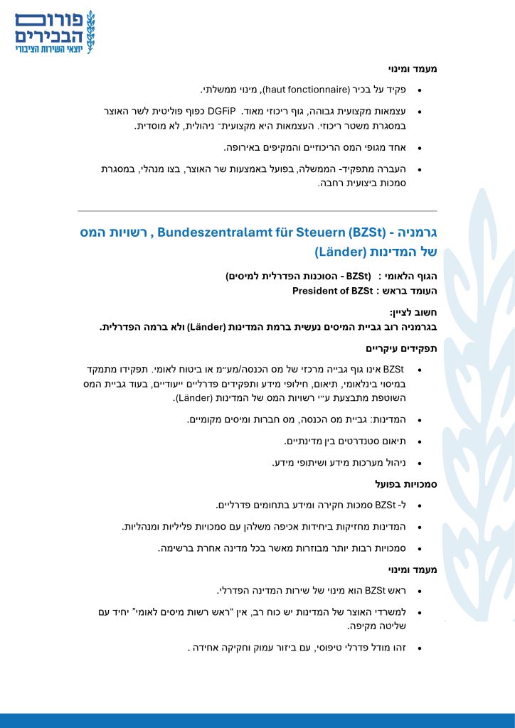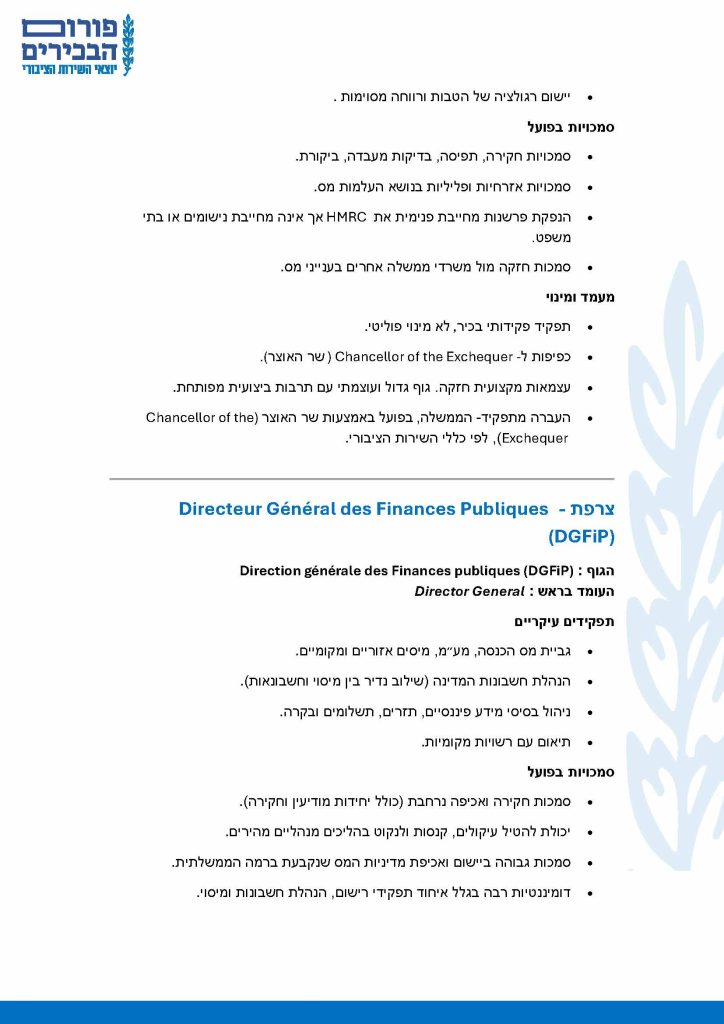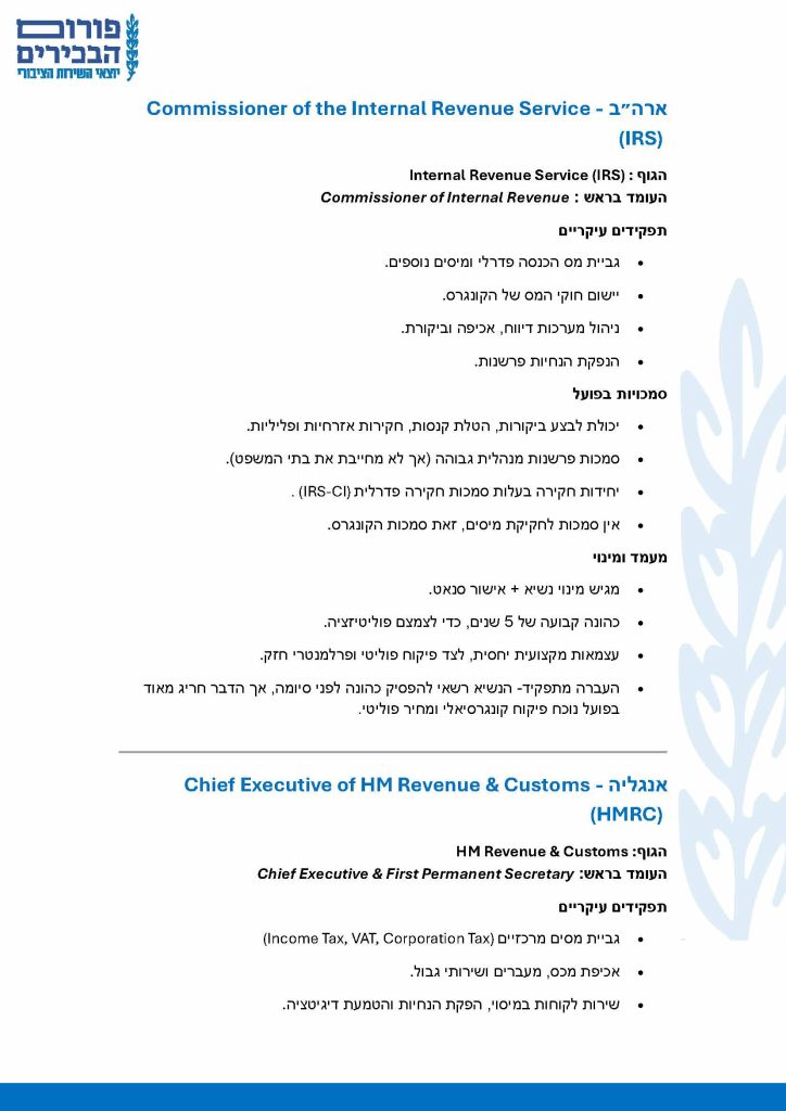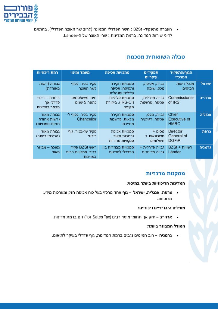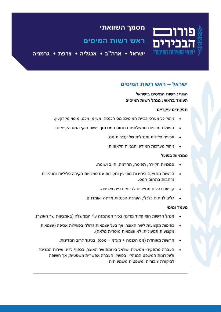 בחינה השוואתית של תפקיד ראש רשות המיסים