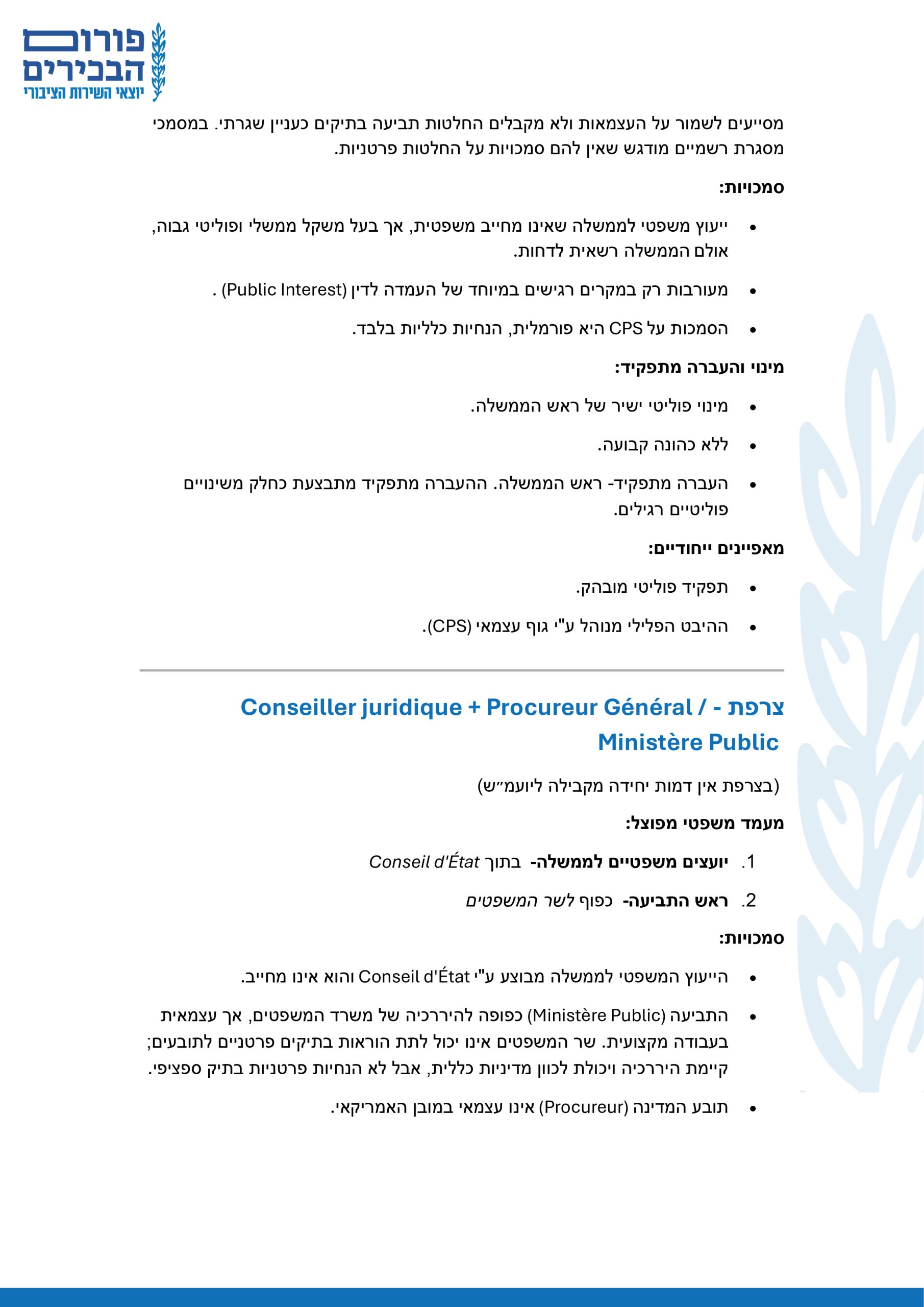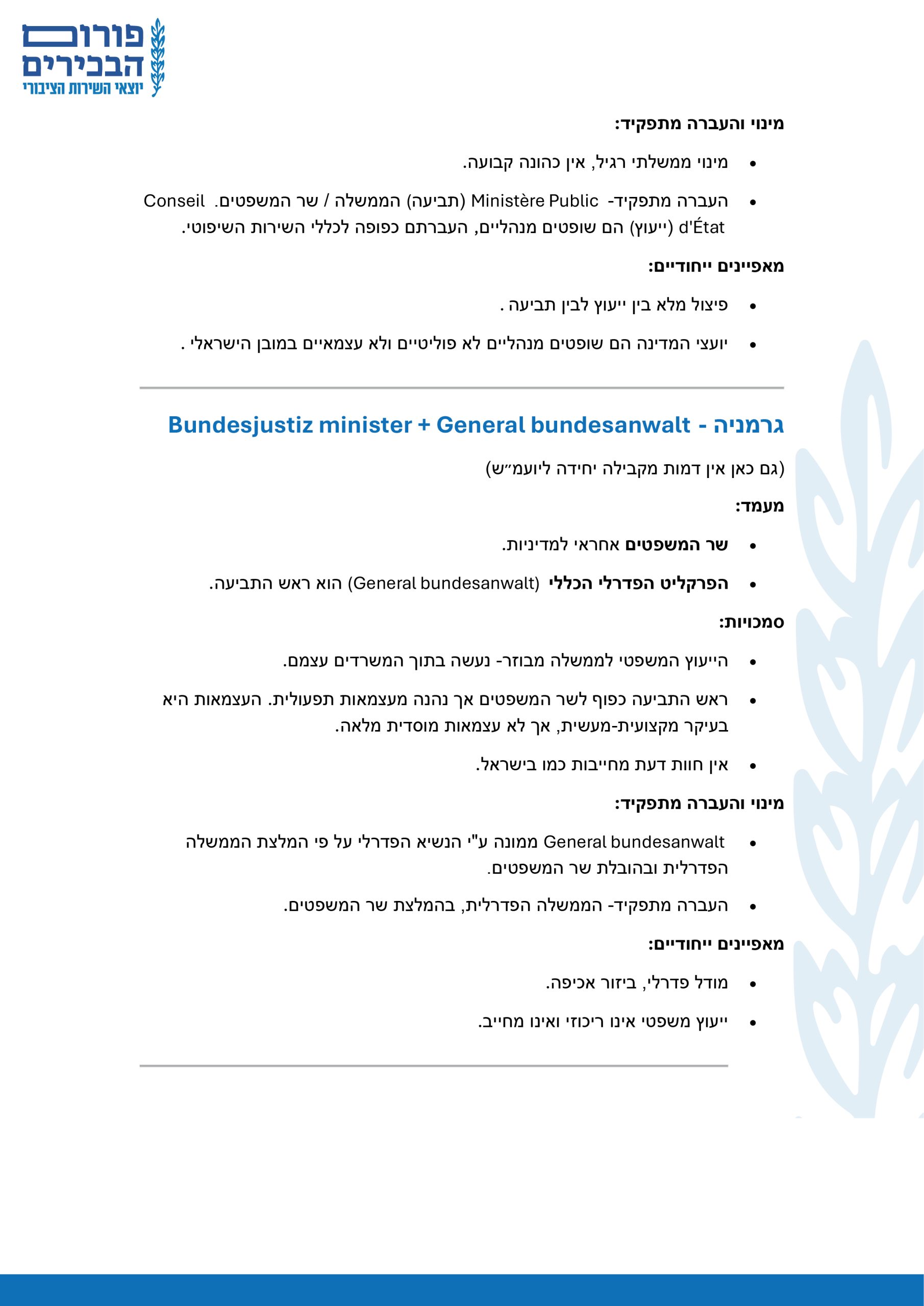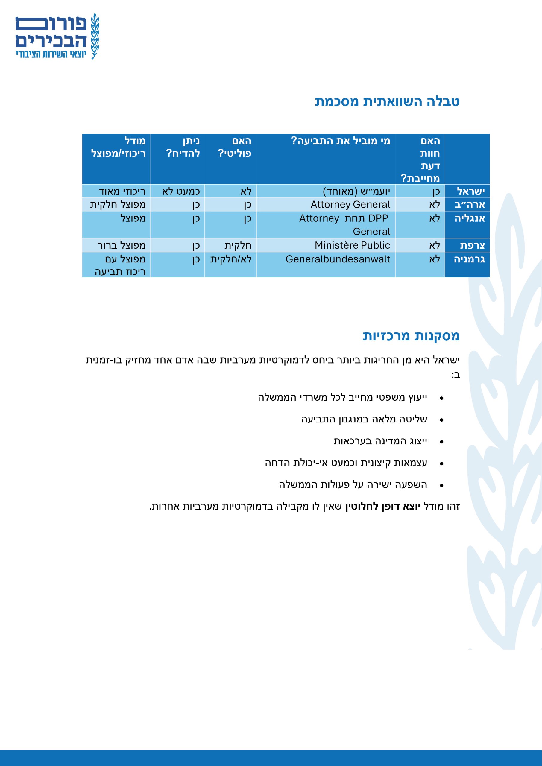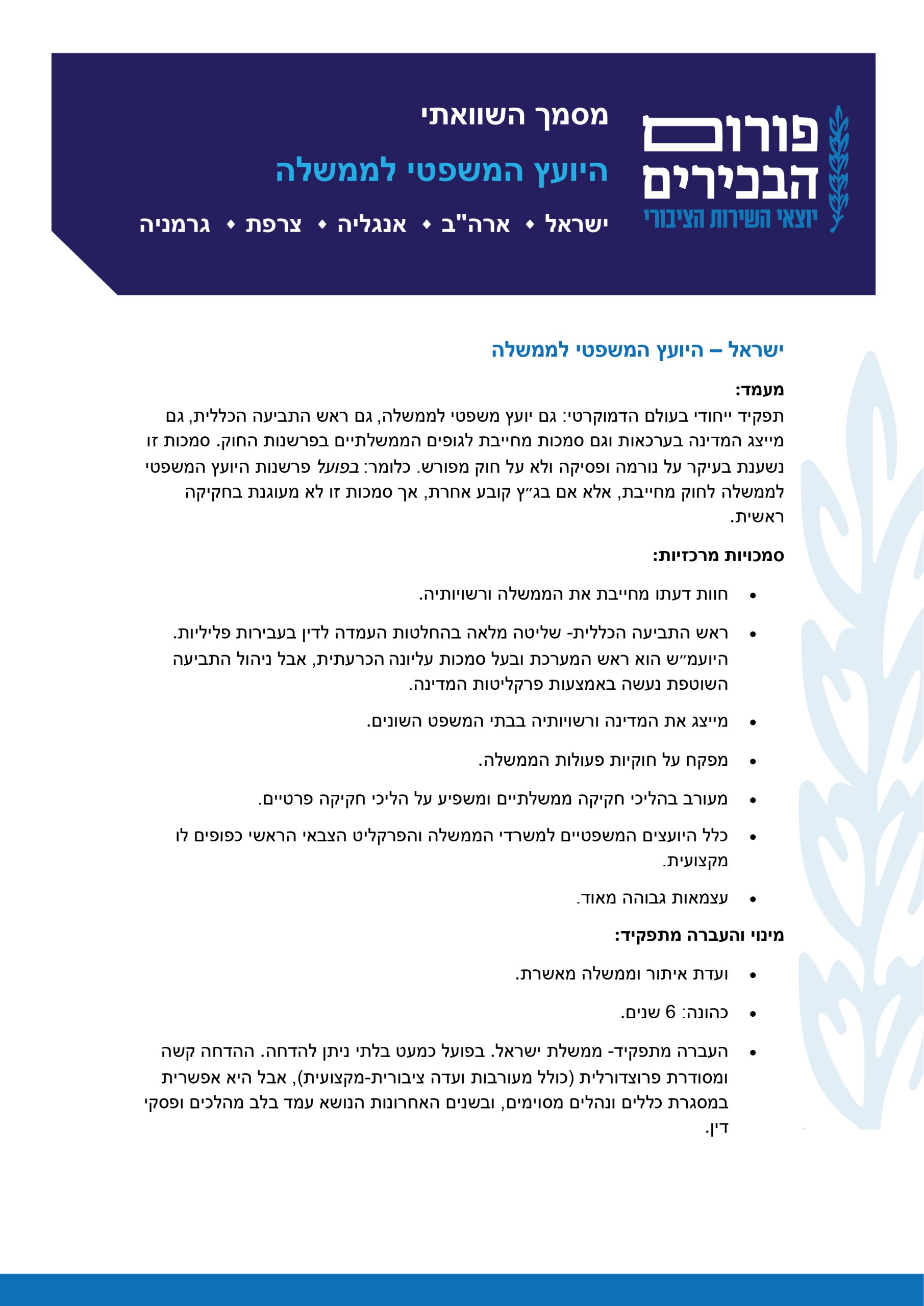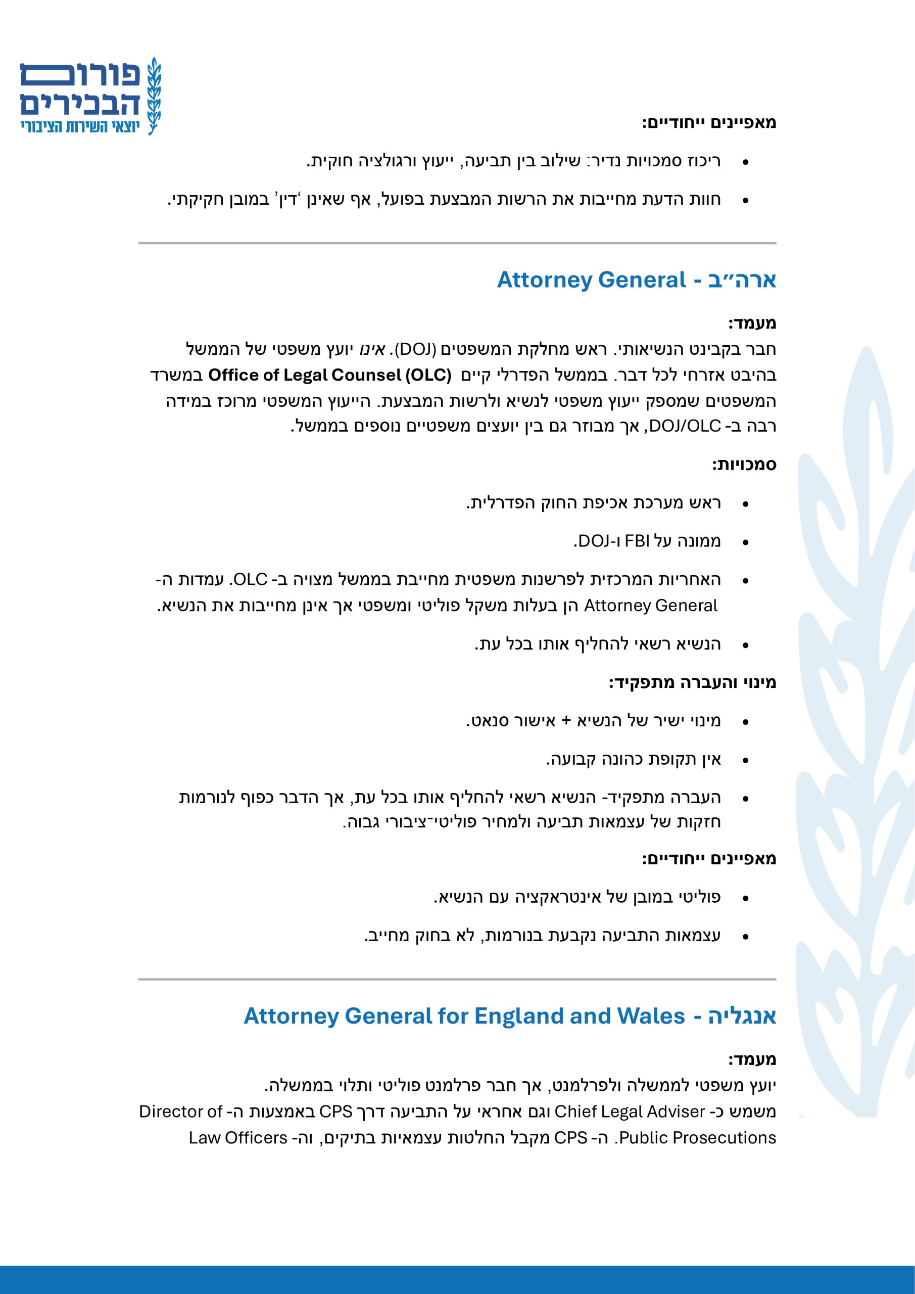 בחינה השוואתית של תפקיד היועץ המשפטי לממשלה