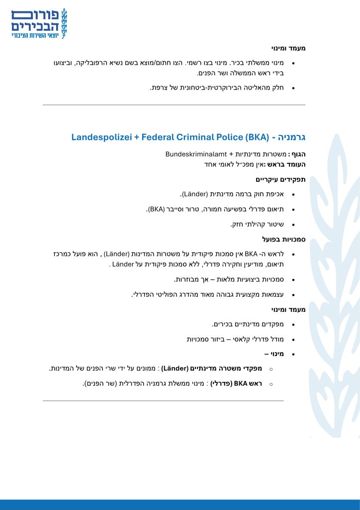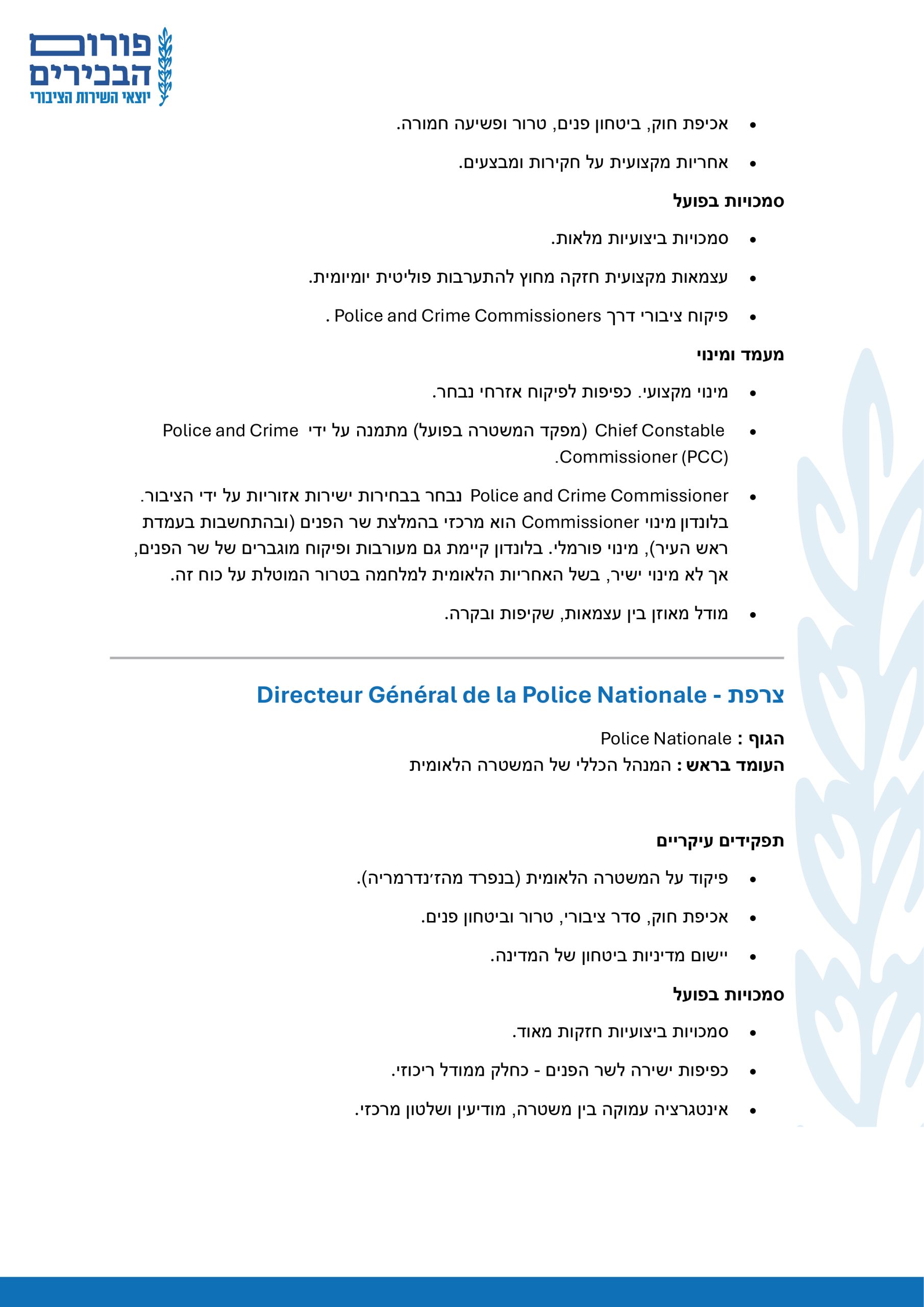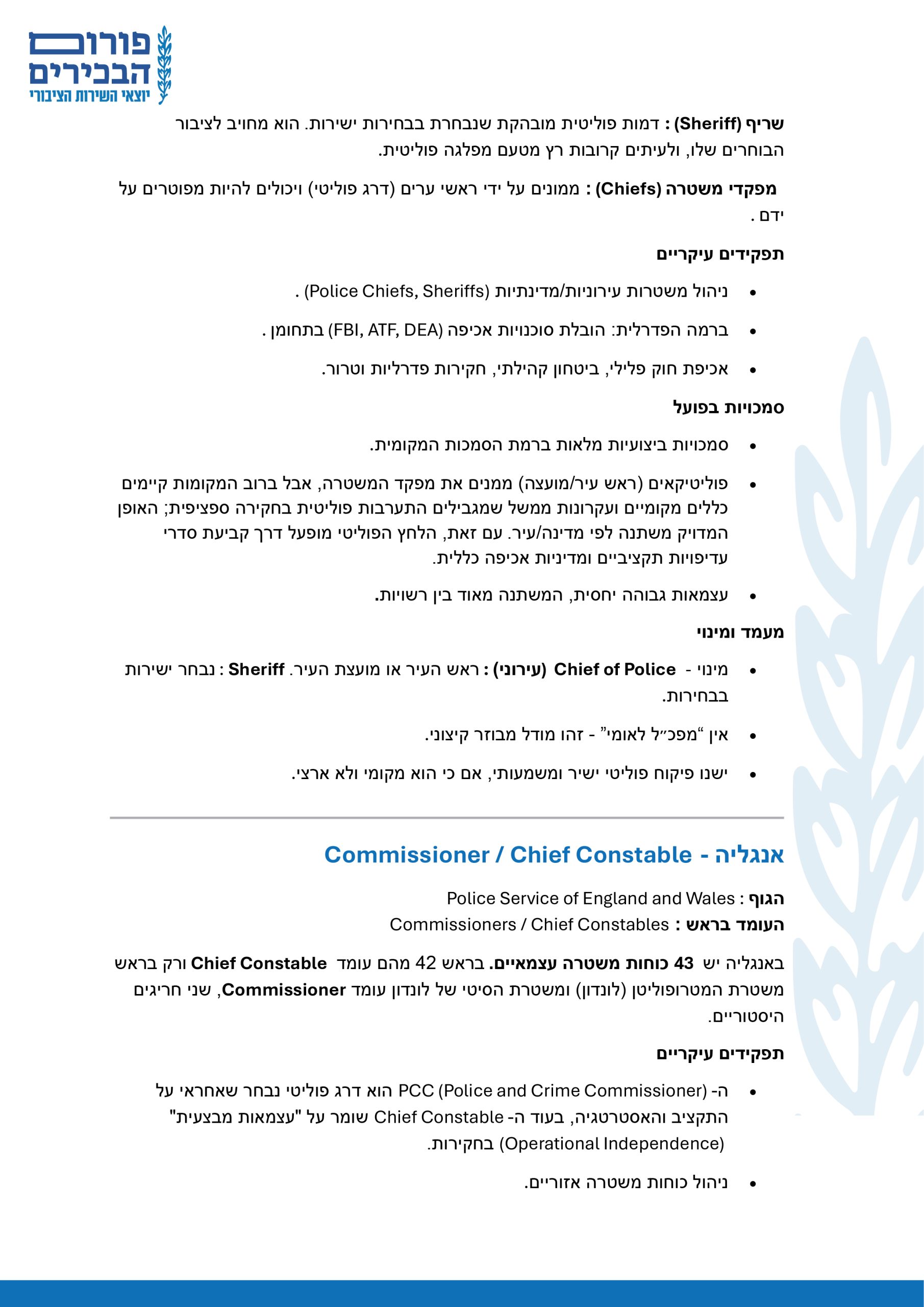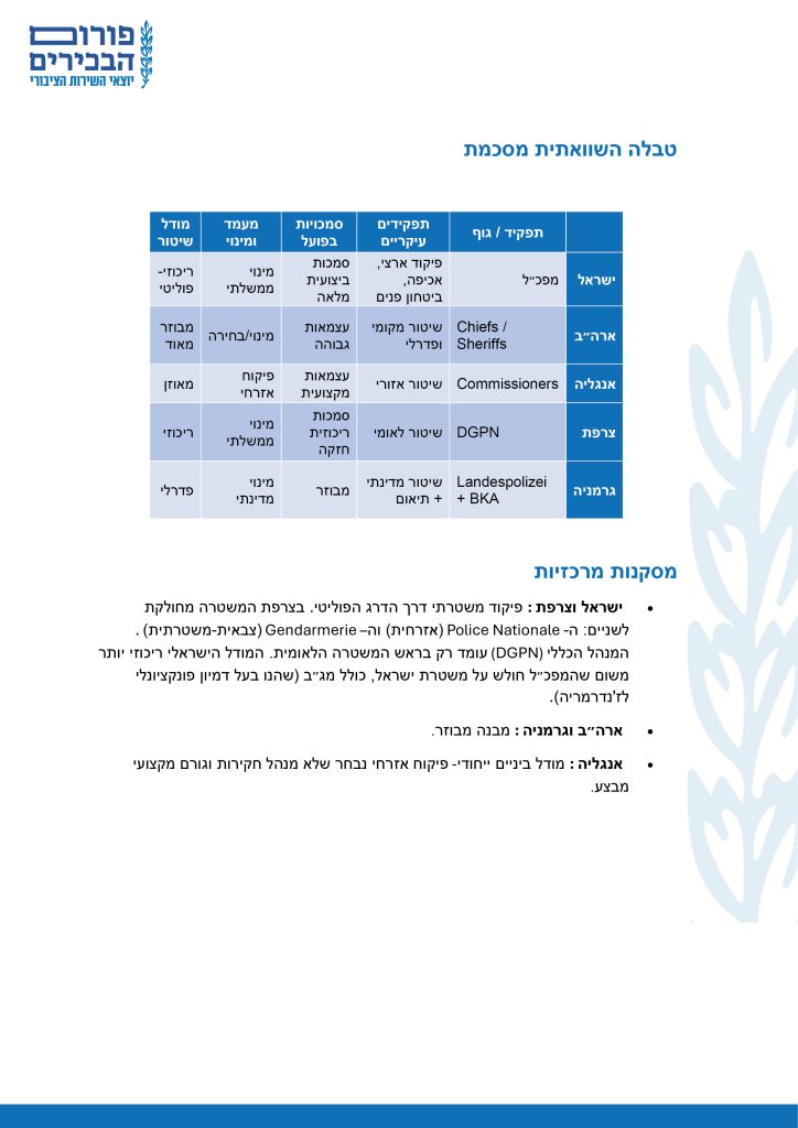 בחינה השוואתית של תפקיד המפקח הכללי של המשטרה