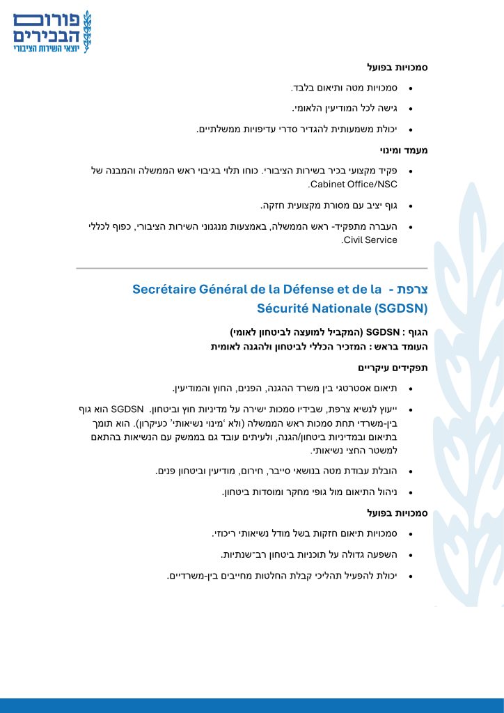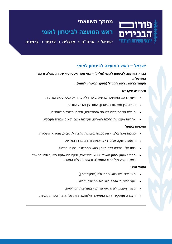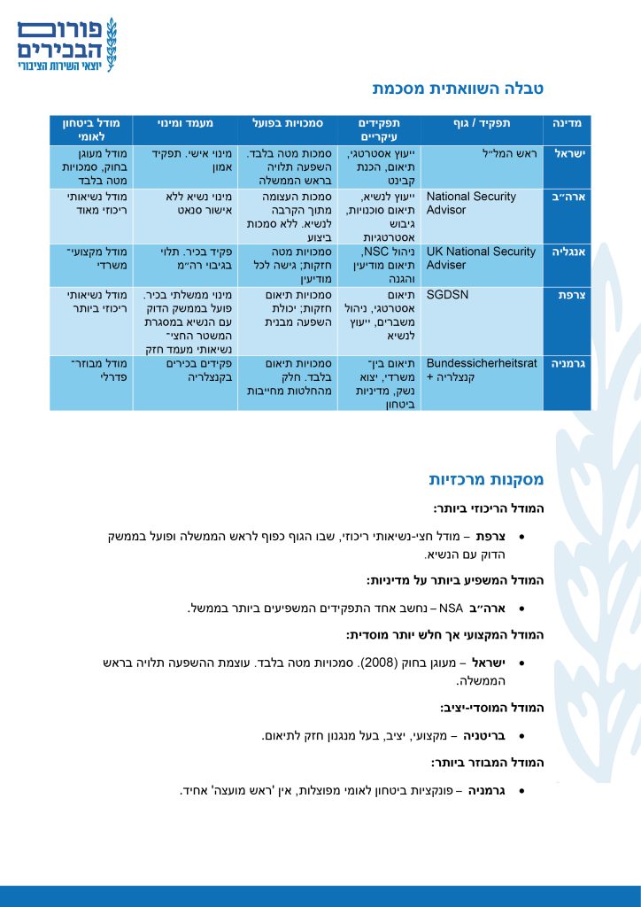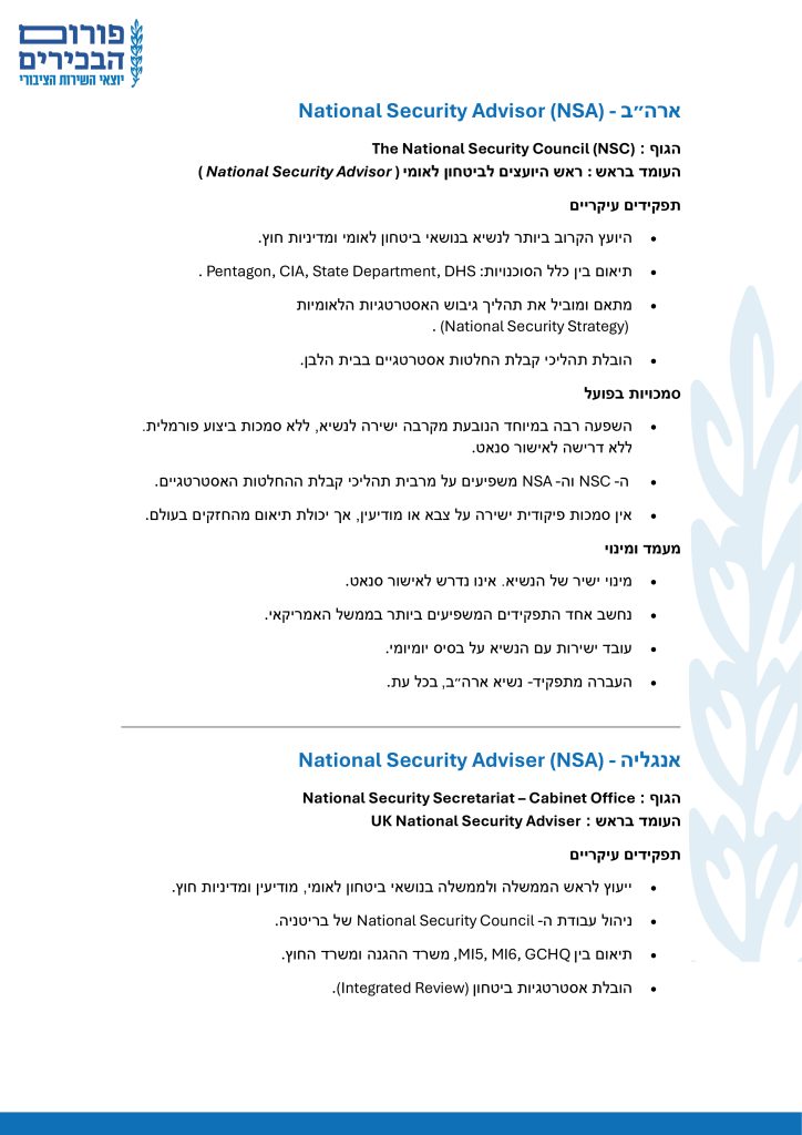 בחינה השוואתית של תפקיד ראש המועצה לביטחון לאומי
