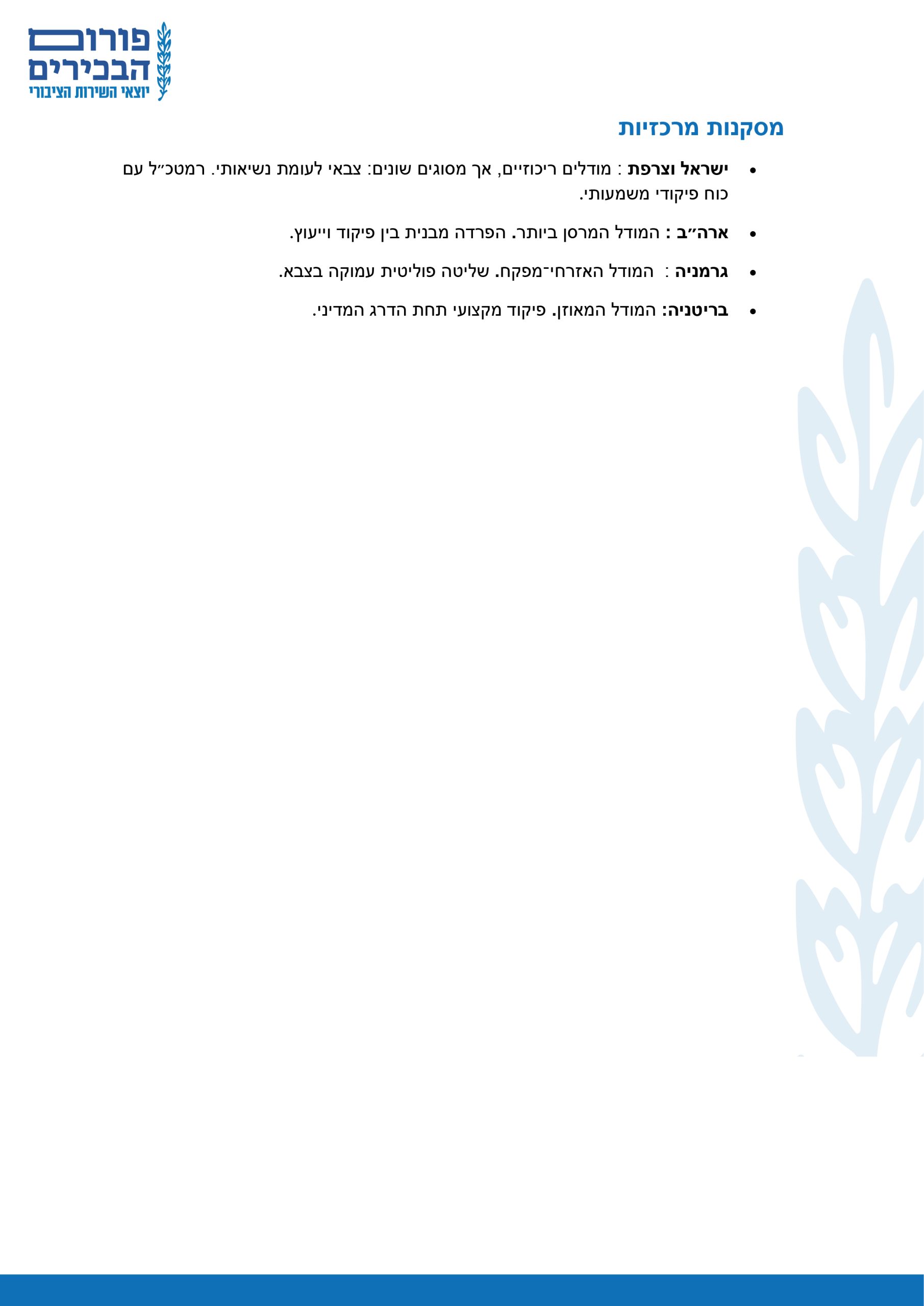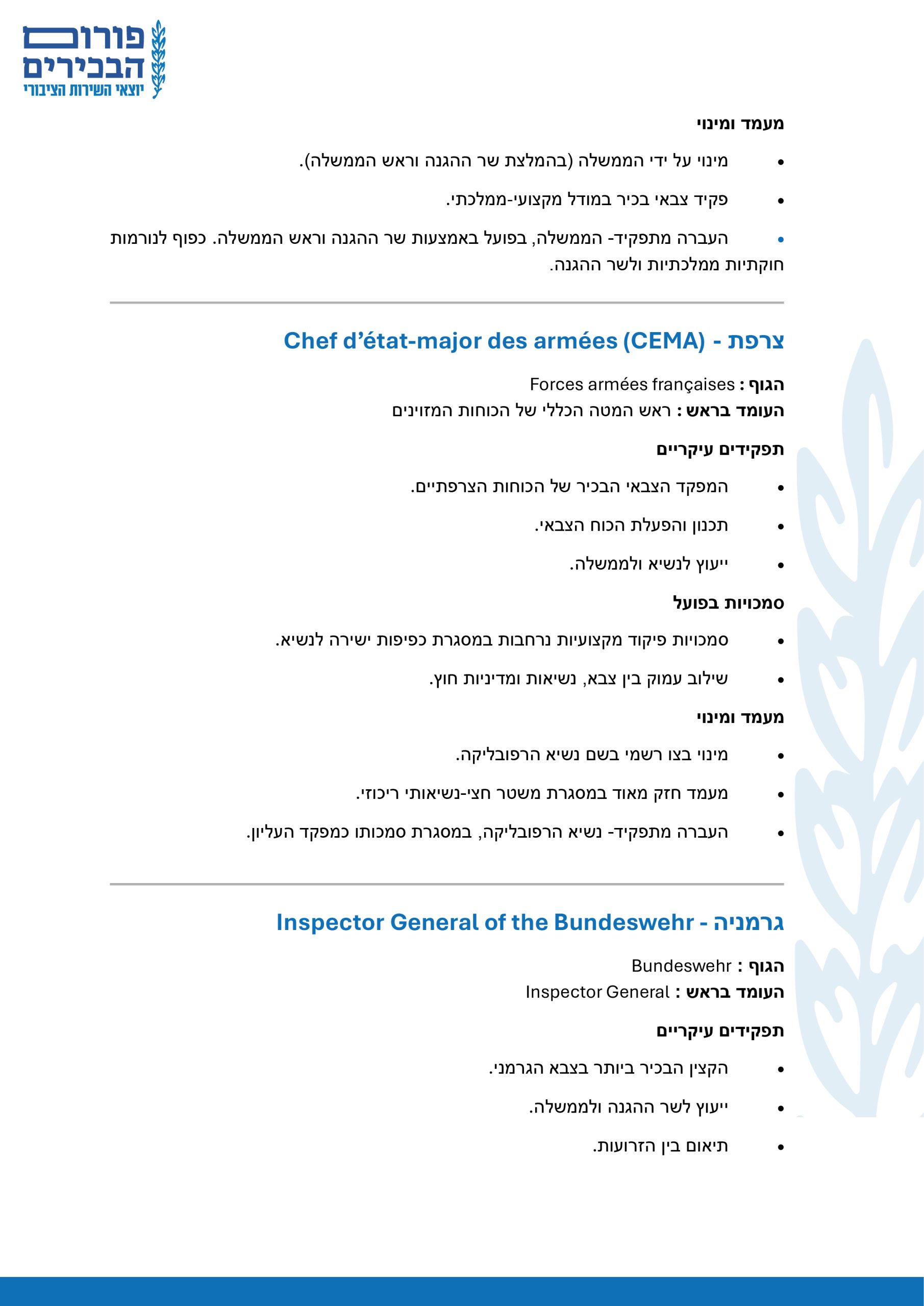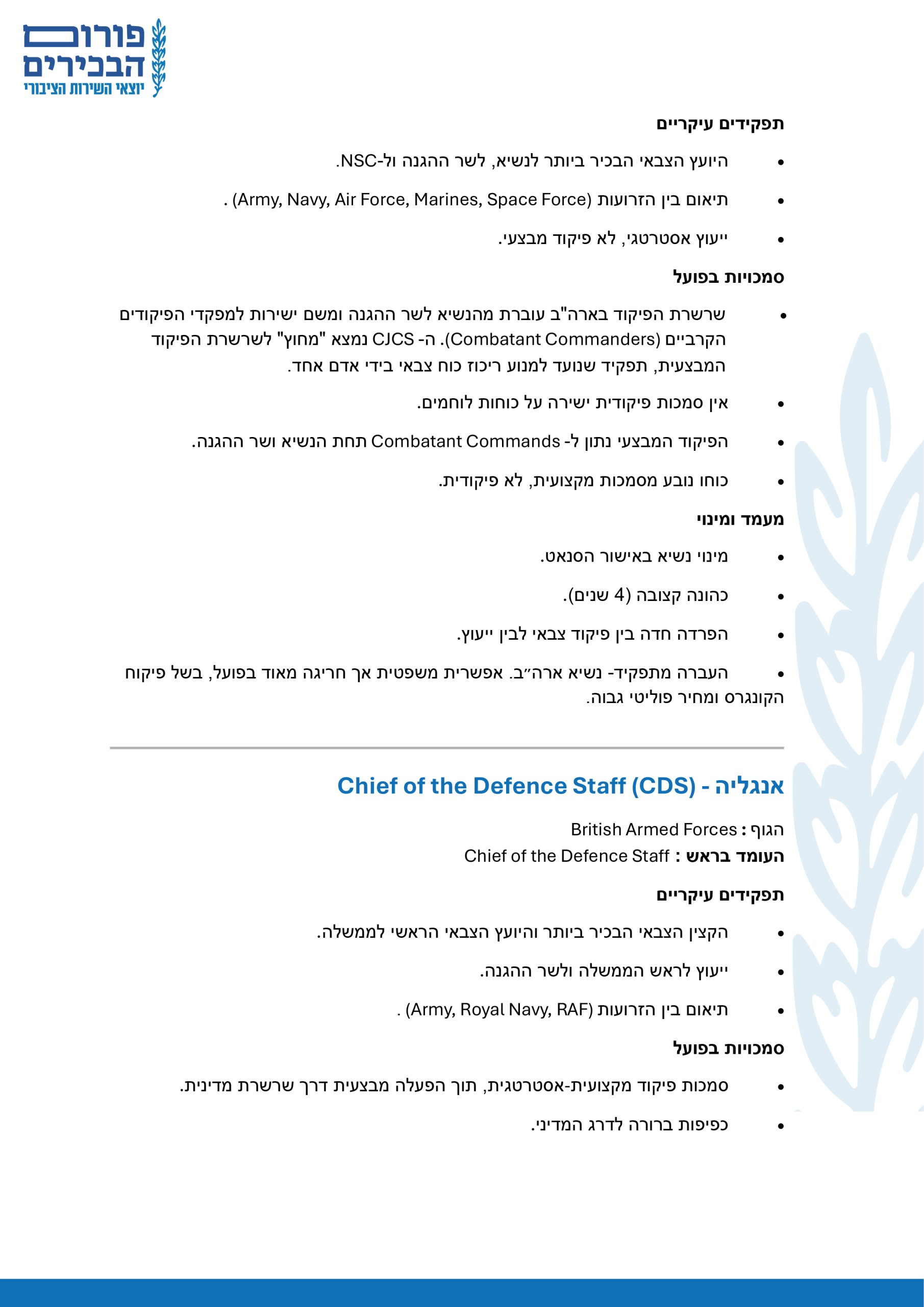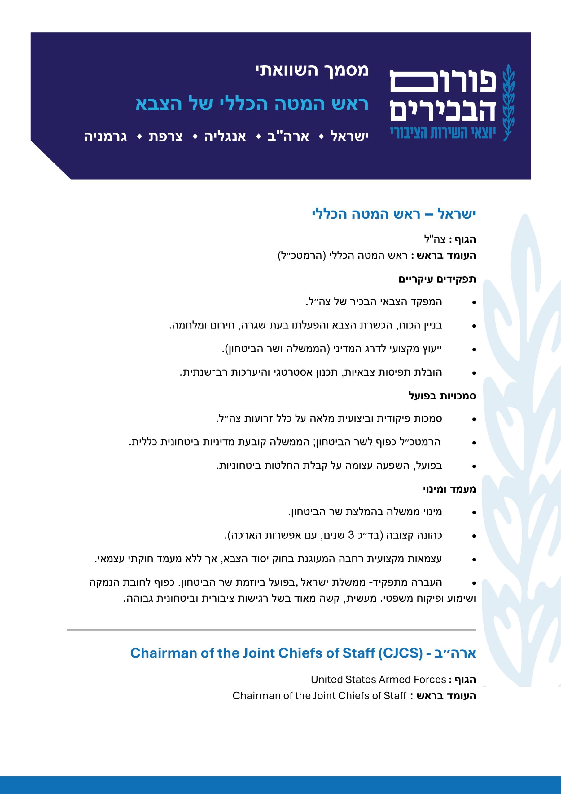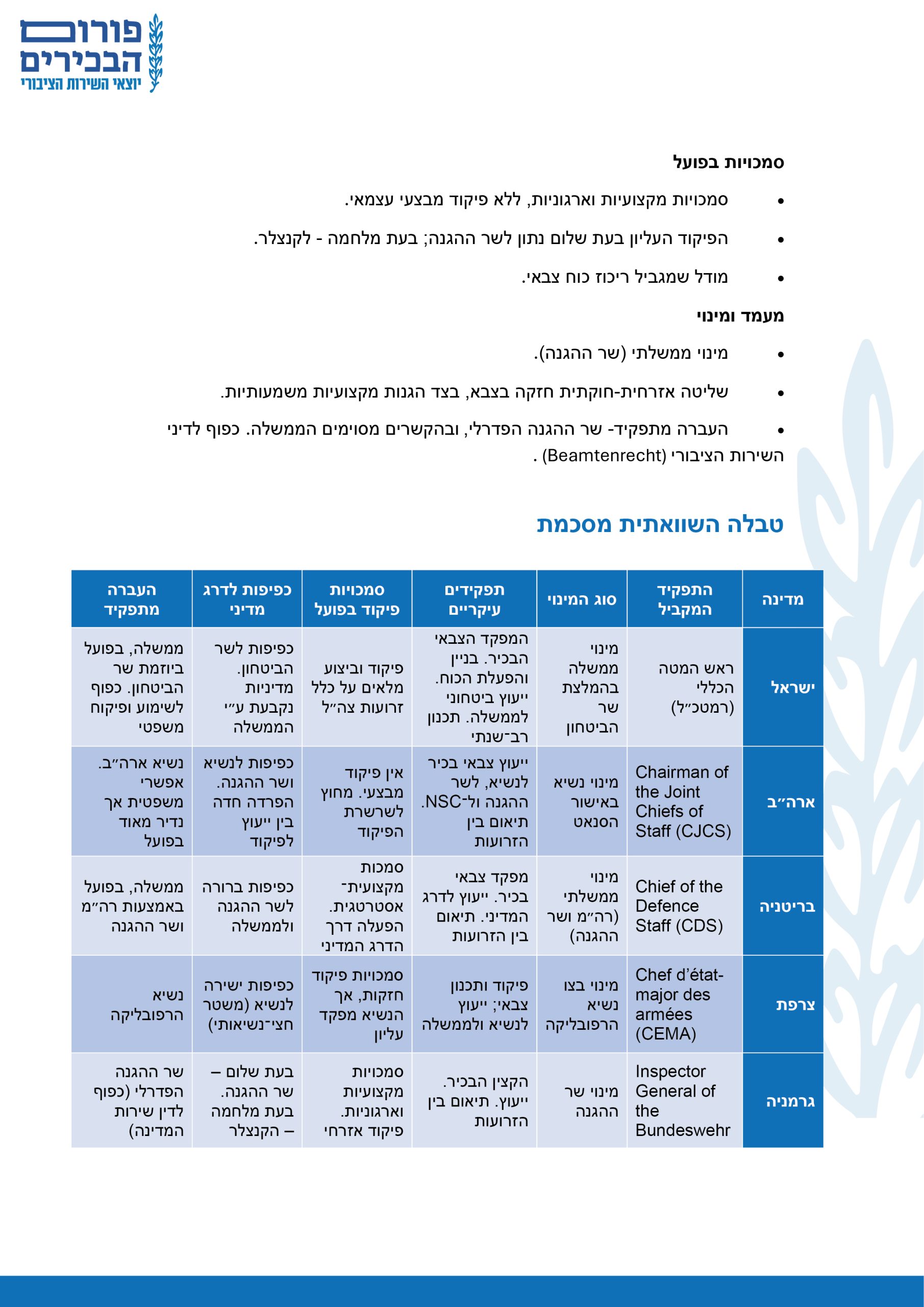 בחינה השוואתית של תפקיד ראש המטה הכללי של הצבא