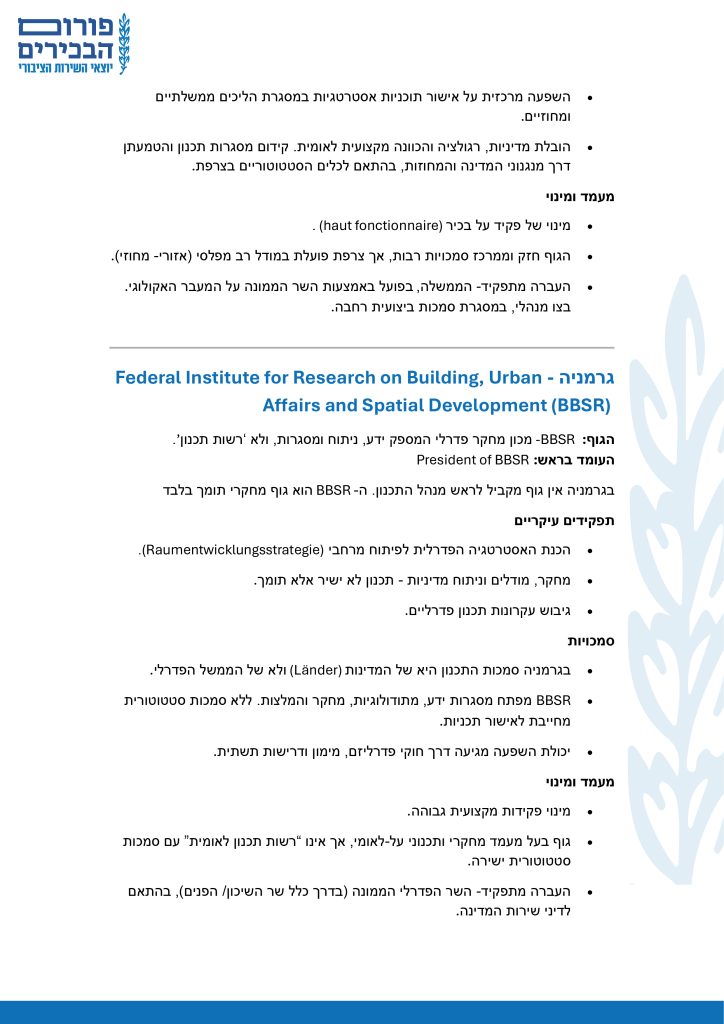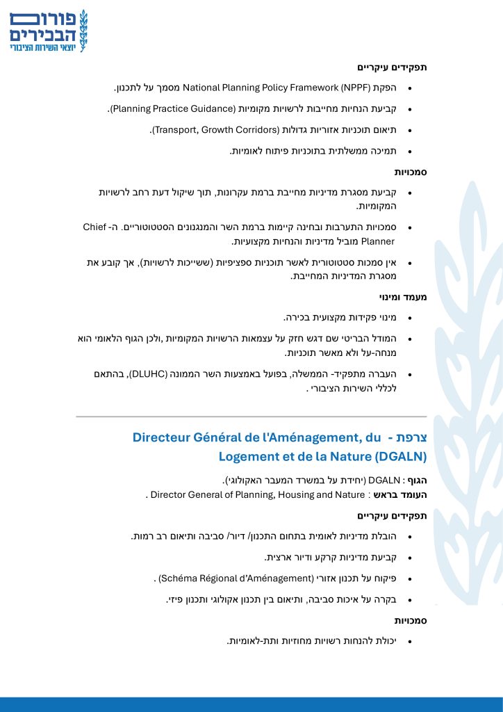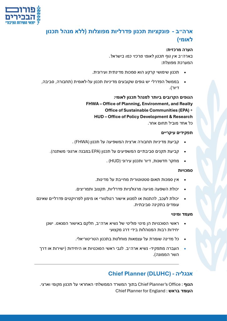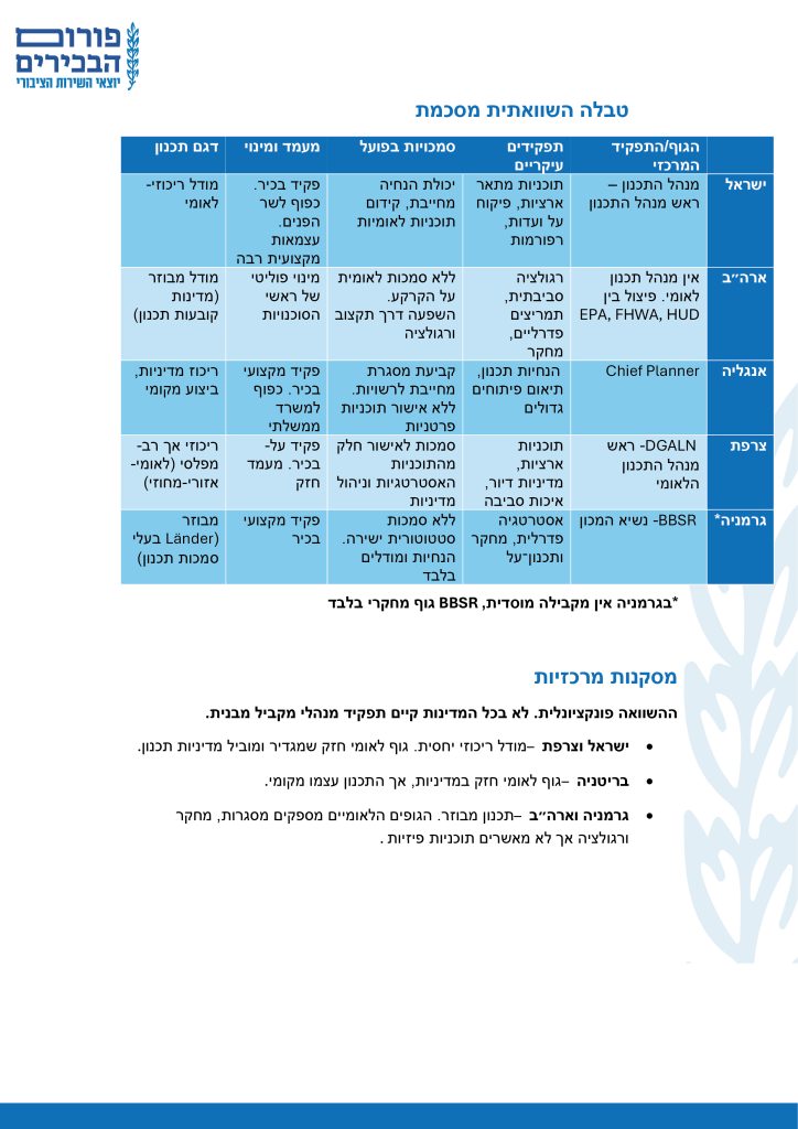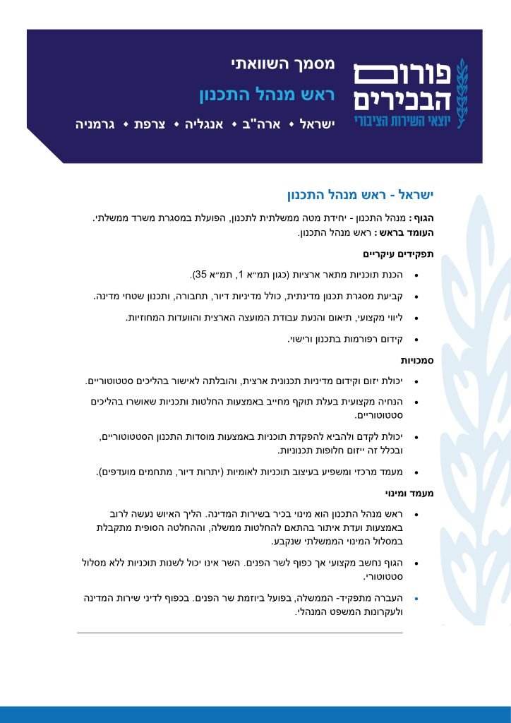 בחינה השוואתית של תפקיד ראש מנהל התכנון